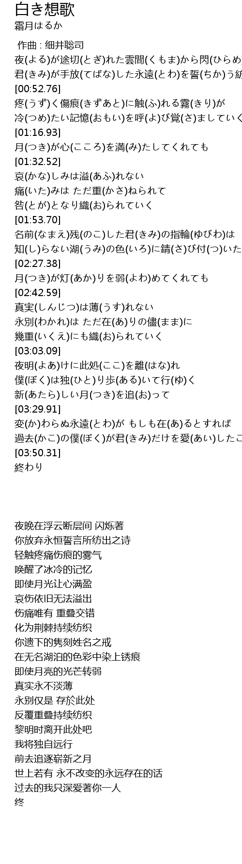 白き想歌 Bai Xiang Ge Lyrics Follow Lyrics